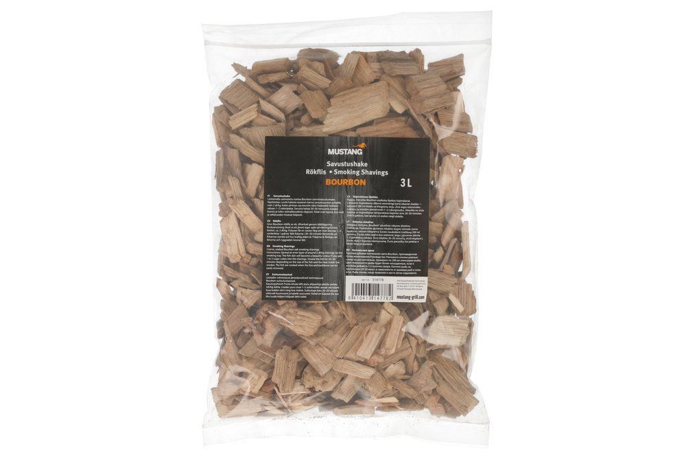 Bourbonissa liotettu tammihake antaa lisäaromia savustukseen. Karkea laatu. Sopii lämminsavustukseen.